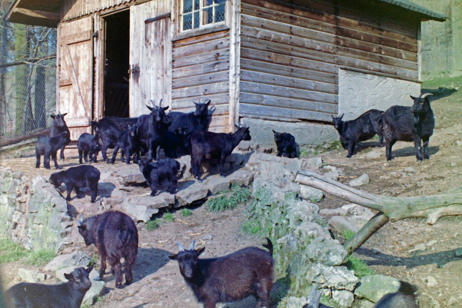 Afrikanische Zwergziegen im Zoologischen Garten Wuppertal im April 1977.