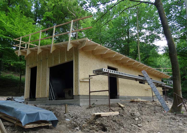 Holz-Rohbau für das Stallgebäude für die neue Milu-Anlage am 12. Mai 2016 im Zoologischen Garten der Stadt Wuppertal.