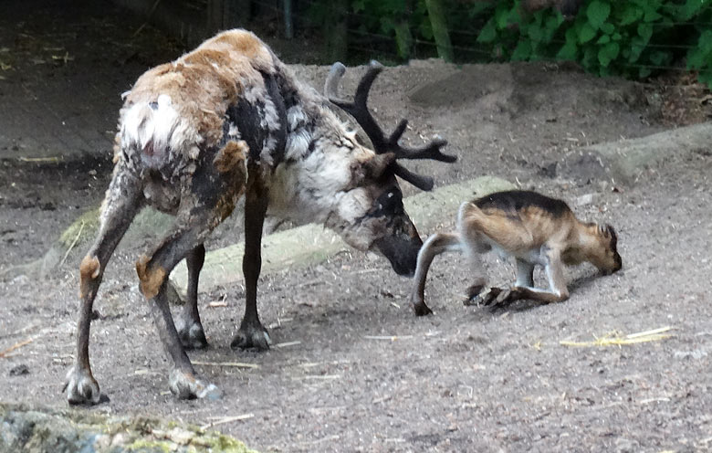 Rentier mit Jungtier am 5. Mai 2016 im Wuppertaler Zoo.