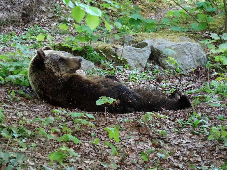 Relaxte Braunbärin "Brenda" am 6. Mai 2016 im Grünen Zoo Wuppertal.