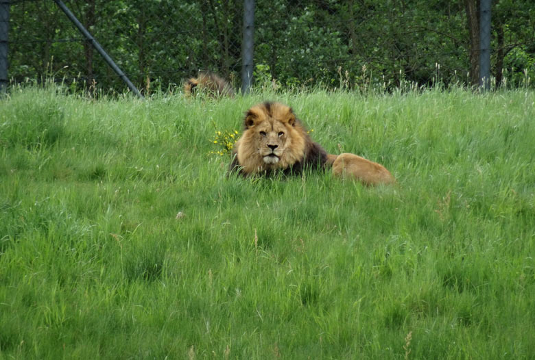 Jägerliest Männchen am 5. Mai 2016 auf der Außenanlage im Grünen Zoo Wuppertal.
