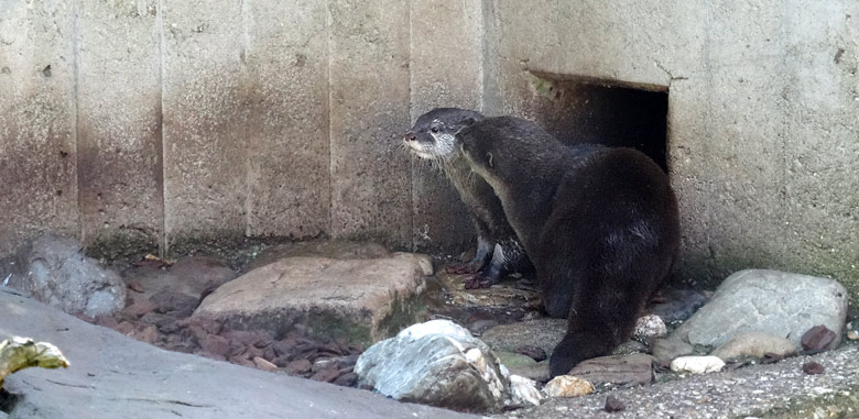Neues Kurzkrallenotter-Weibchen "Miri" mit Kurzkrallenotter-Männchen "Harry" am 5. Mai 2016 im Zoo Wuppertal.