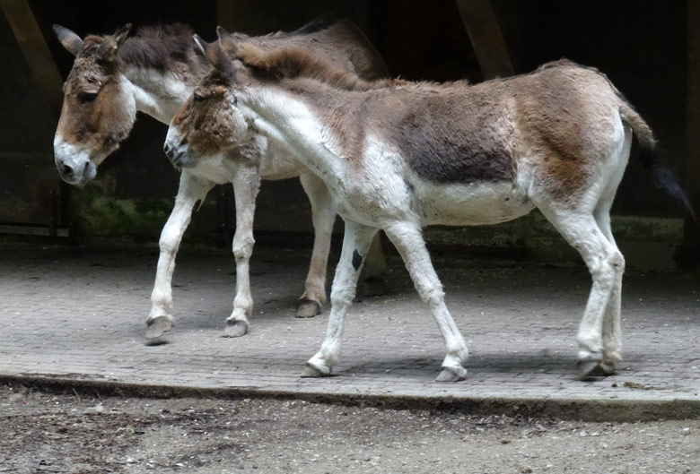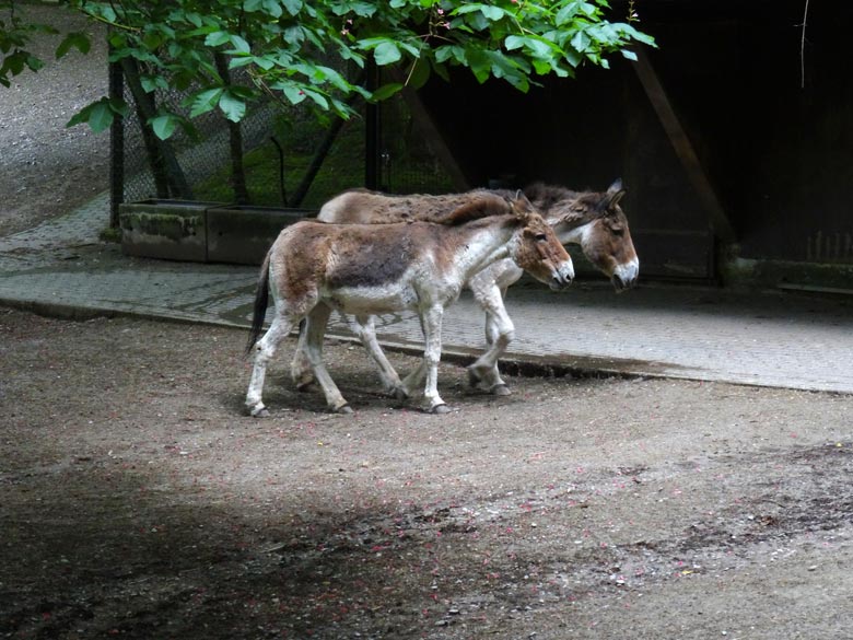 Zwei Kiang-Stuten am 31. Mai 2016 auf der Außenanlage im Zoologischen Garten der Stadt Wuppertal.