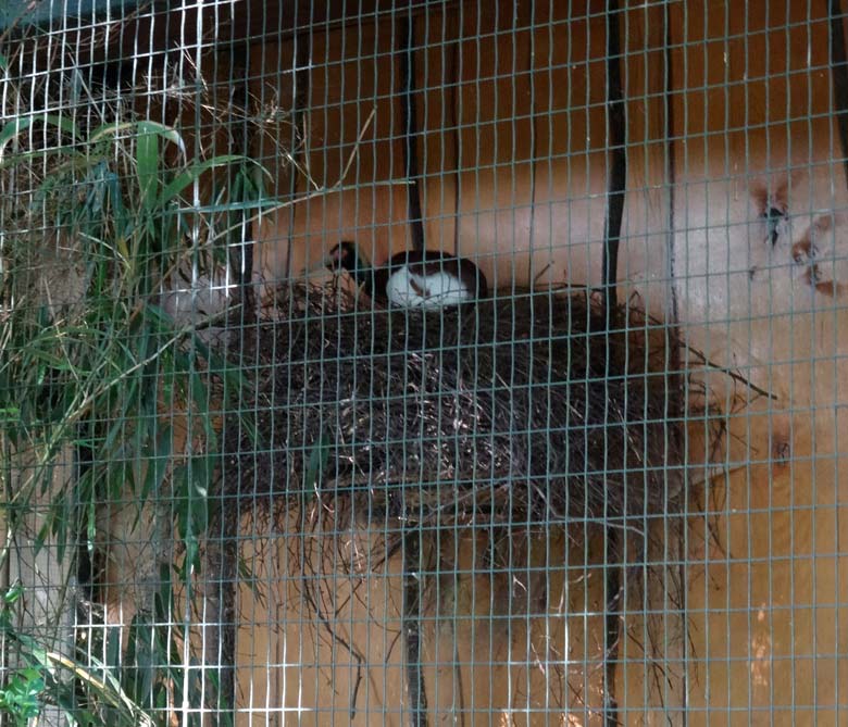 Mähnenibis auf dem Nest am 27. Mai 2016 im Zoologischen Garten der Stadt Wuppertal.