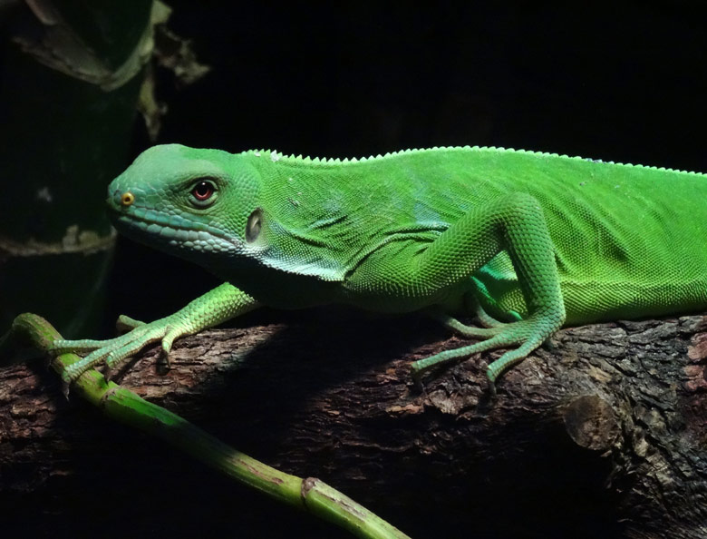 Ein gebänderter Fidschi-Leguan (Brachylophus fasciatus) lebte bislang allein im Schaugehege im Terrarium im Zoologischen Garten der Stadt Wuppertal. Vor wenigen Tagen zog der Gebänderte Fidschi-Leguan von seinem bisherigen Schaugehege in das Gehege, in dem bis dahin die zwei Madagaskar-Hundskopfboas zu sehen waren.