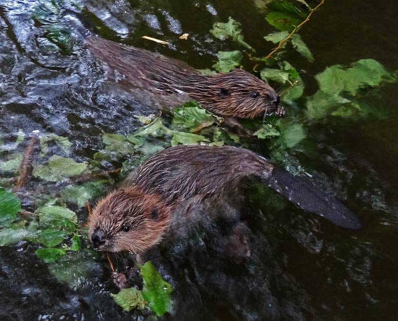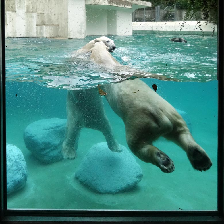 Im Wasser spielende Eisbären LUKA und ANORI am 2. Oktober 2016 im Grünen Zoo Wuppertal.