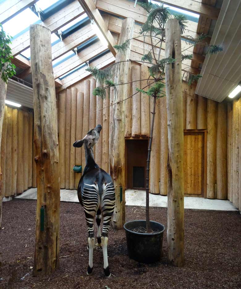 Derzeit ist das Okapi-Haus im Zoologischen Garten der Stadt Wuppertal für Zoobesucher/innen nicht zugänglich, damit das am 7. Oktober 2016 geborene weibliche Jungtier "Elani" ungestört das Innengehege des Okapi-Hauses erkunden und kennenlernen kann.