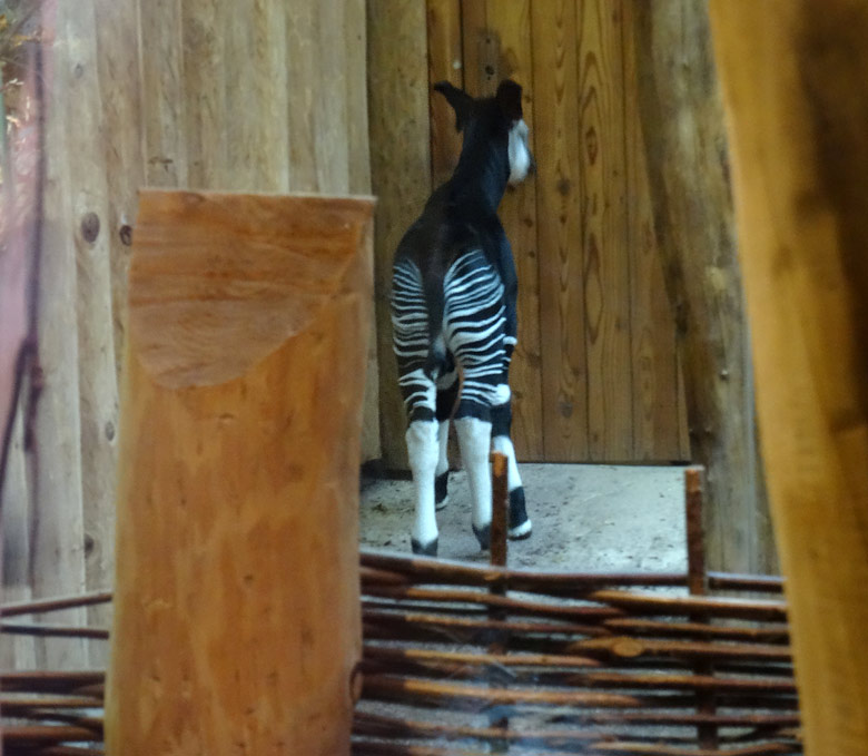 Okapi-Jungtier ELANI am 30. Oktober 2016 im Okapi-Haus im Grünen Zoo Wuppertal.