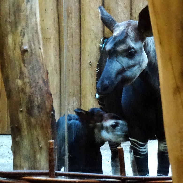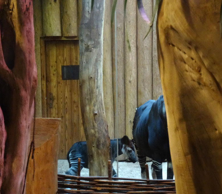 Okapi-Jungtier ELANI mit Okapi-Mutter LOMELA am 30. Oktober 2016 im Okapi-Haus im Zoologischen Garten der Stadt Wuppertal.