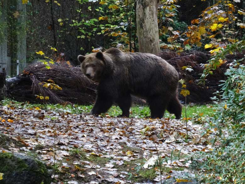 Braunbärin SIDDY am 29. Oktober 2016 auf der Außenanlage im Zoologischen Garten der Stadt Wuppertal.