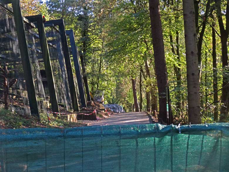Noch am langen ersten Oktober-Wochenende 2016 konnten Zoobesucher/innen auf dem Weg entlang der früheren Greifvogel-Anlagen zwischen dem derzeitigen Schneeleoparden-Gehege und dem Wasserspielplatz spazieren gehen.