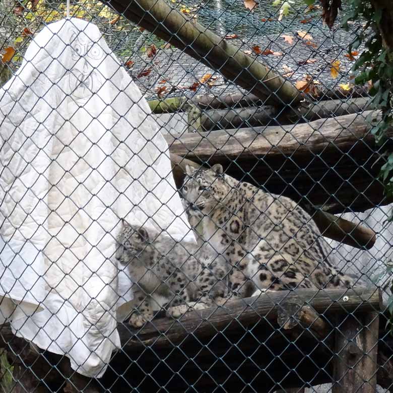 Im Gehege der Schneeleoparden im Zoologischen Garten der Stadt Wuppertal hängten Tierpfleger am Sonntag, dem 30. Oktober 2016, ein Halloween-Gespenst auf.