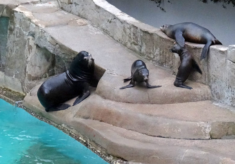 Vier Kalifornische Seelöwen konnten Zoobesucher/innen am Donnerstag, dem 6. Oktober 2016, am Seelöwenbecken im Zoologischen Garten der Stadt Wuppertal betrachten.