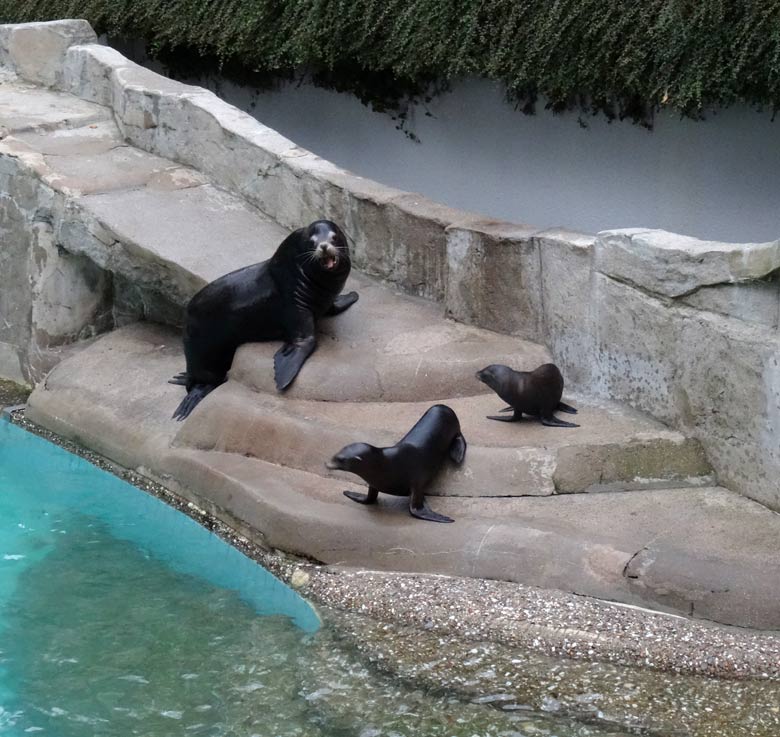 Kalifornische Seelöwin DONNA mit DAVY JONES und MYLO am 6. Oktober 2016 im Wuppertaler Zoo.