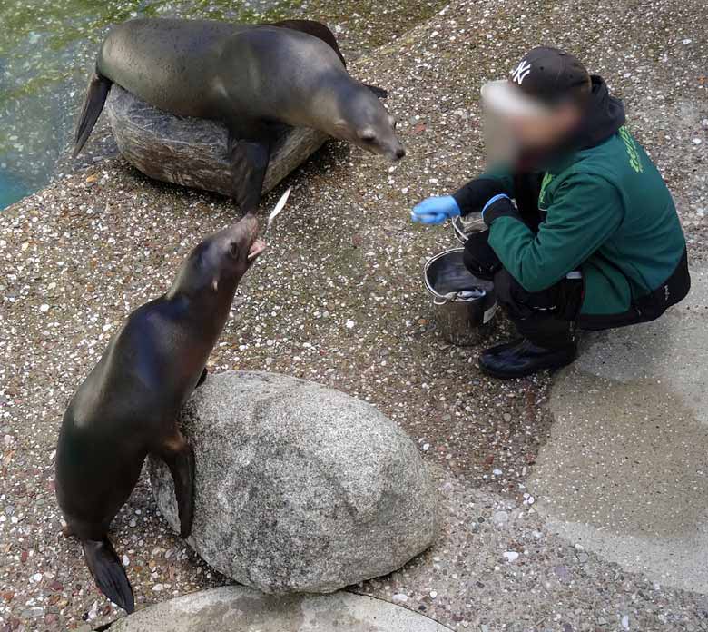 Fisch für die Kalifornische Seelöwin KUBA am 8. Oktober 2016 bei der kommentierten Fütterung im Zoologischen Garten der Stadt Wuppertal.