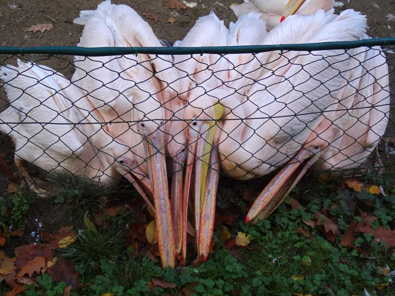 Erwartungsfroh standen die acht Rosapelikane am Samstag, dem 29. Oktober 2016, auf ihrer Außenanlage im Zoologischen Garten der Stadt Wuppertal und warteten auf die Fütterung.