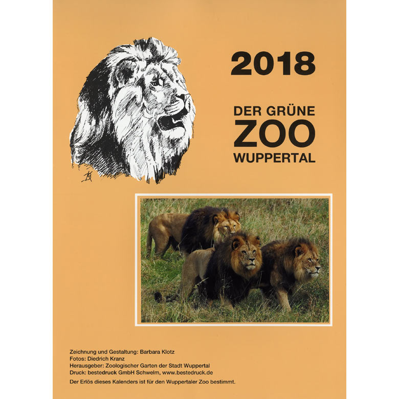Der Zookalender wurde wieder in aufwändiger Handarbeit ehrenamtlich von Mitgliedern des Zoo-Vereins hergestellt. Die Zeichnungen lieferte die Künstlerin Barbara Klotz, die auch für die Gestaltung des gesamten Kalenders verantwortlich war. Die Fotos stammen von dem im August 2017 verstorbenen Fotografen Diedrich Kranz sowie von der Fotografin Barbara Scheer. Die Motive stammen natürlich alle aus dem Grünen Zoo Wuppertal und zeigen einen schönen Querschnitt der tierischen Zoobewohner.