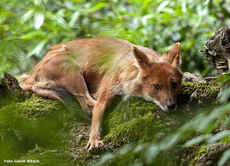 Asiatischer Rothund am 3. Juni 2018 im Grünen Zoo Wuppertal.
