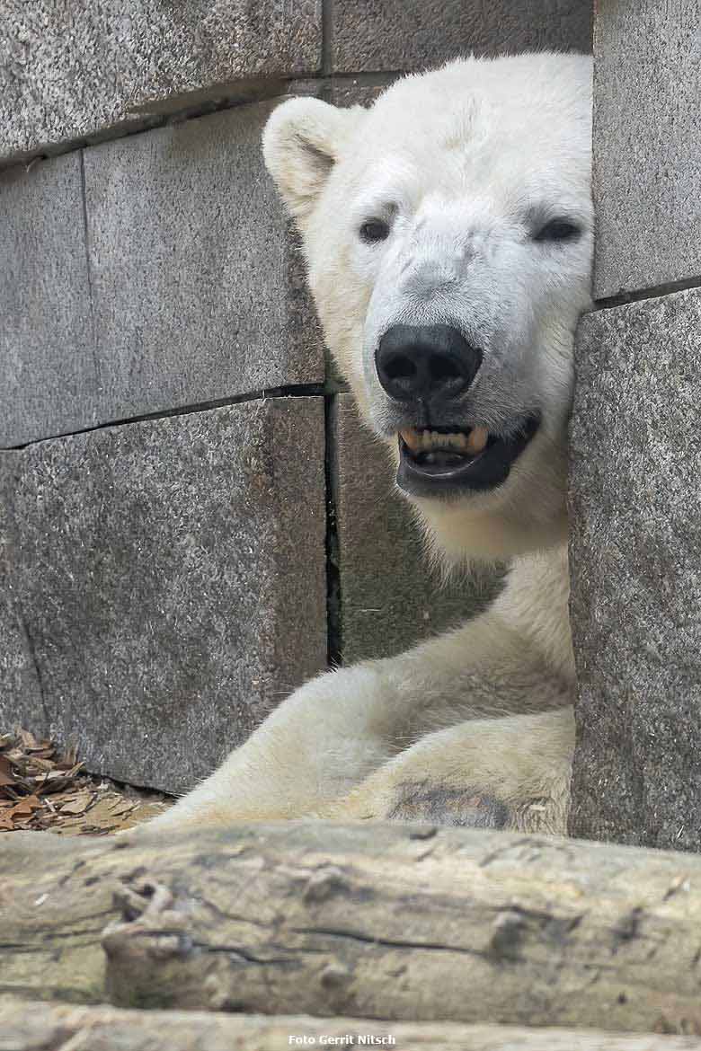 Eisbärin ANORI am 25. Oktober 2019 auf der großen Außenanlage im Grünen Zoo Wuppertal.