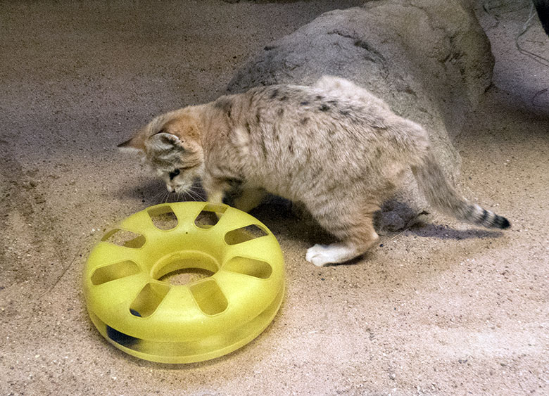 Afrikanische Löwen-Katze MALAIKA am 5. Oktober 2019 auf der Löwen-Savanne im Zoologischen Garten Wuppertal.