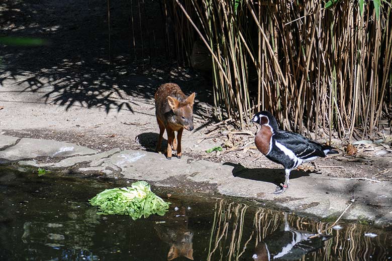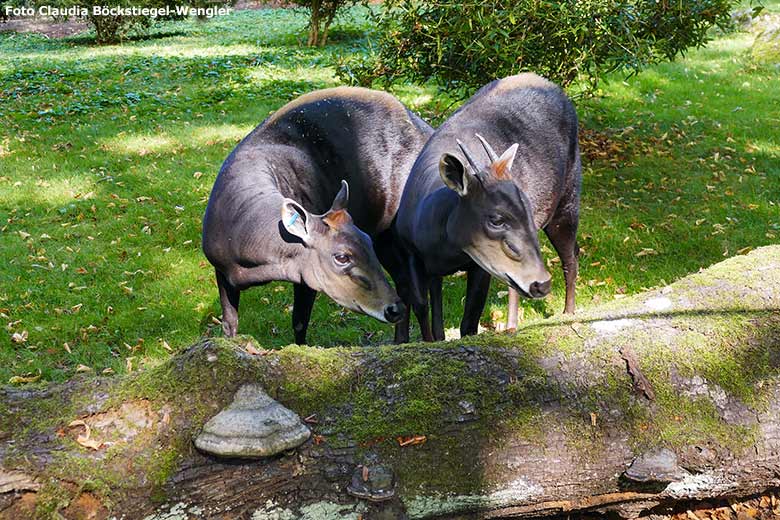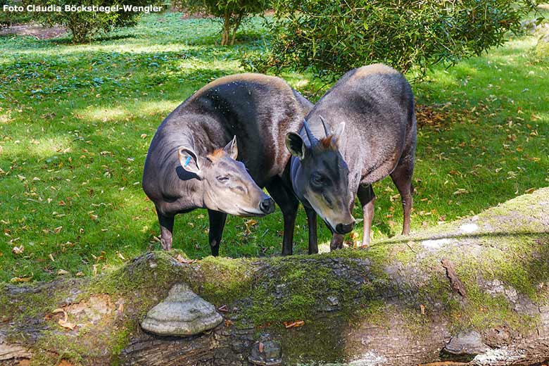 Die beiden Mishmi-Takine auf der unteren Anlage am 4. September 2020 im Zoologischen Garten Wuppertal.