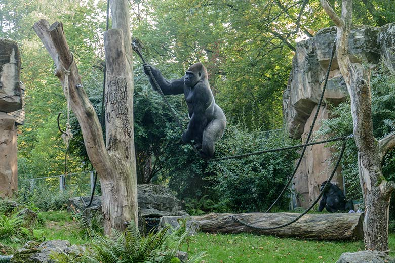 Schwarzer Klammeraffe am 12. September 2020 auf der Außenanlage am Affen-Haus im Grünen Zoo Wuppertal.