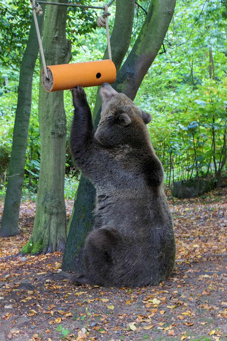 Afrikanische Löwin MAISHA am 27. September 2020 auf der Außenanlage vor dem Löwen-Haus im Grünen Zoo Wuppertal.