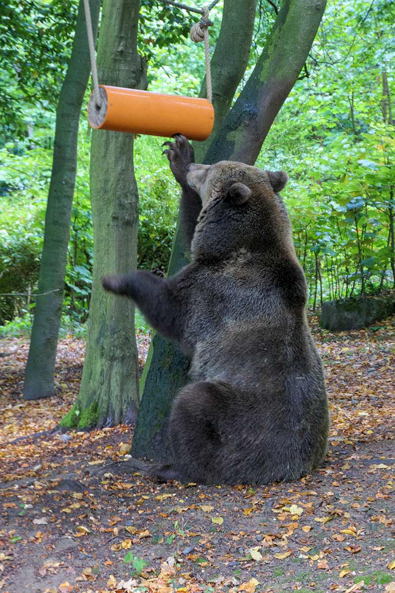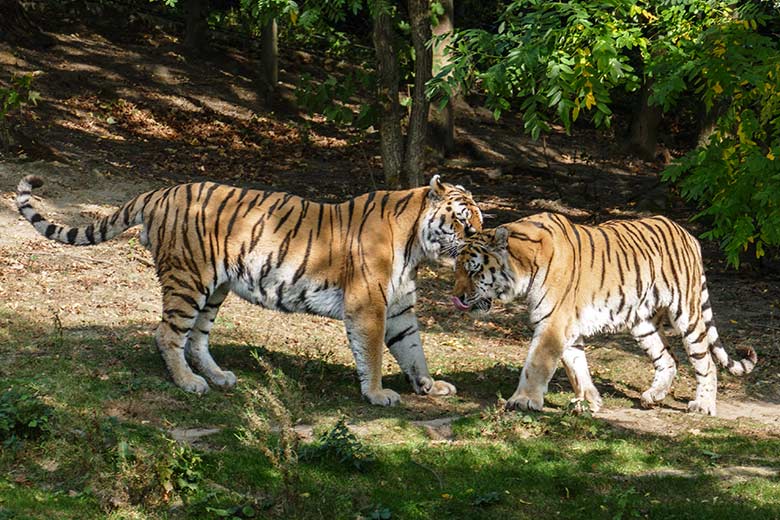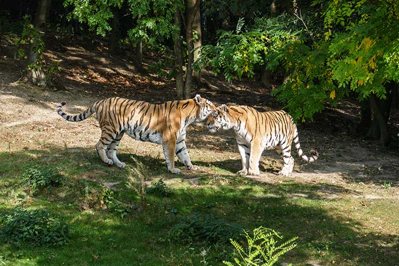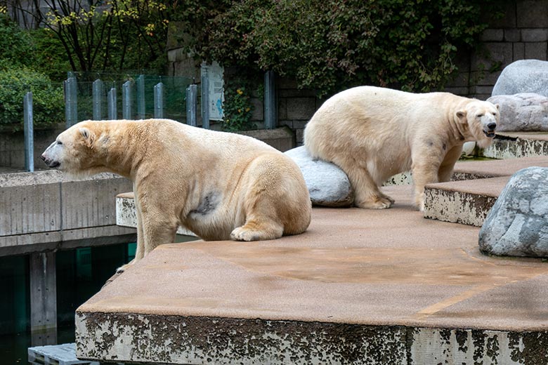 Eisbär LUKA und Eisbärin ANORI am 27. September 2020 auf der Außenanlage im Grünen Zoo Wuppertal.