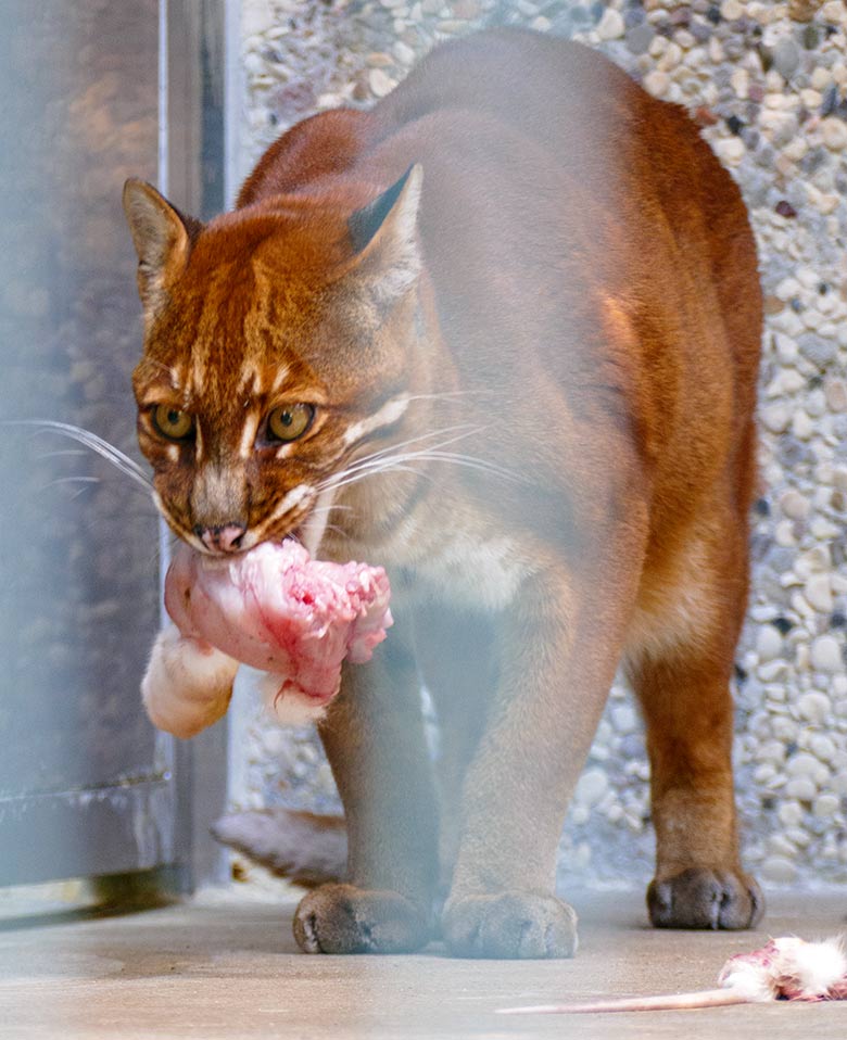 Bei den Asiatischen Goldkatzen im Großkatzen-Haus wäre eine Ganzkörper-Fütterung eines Hasen wohl eine zu mächtige Portion.