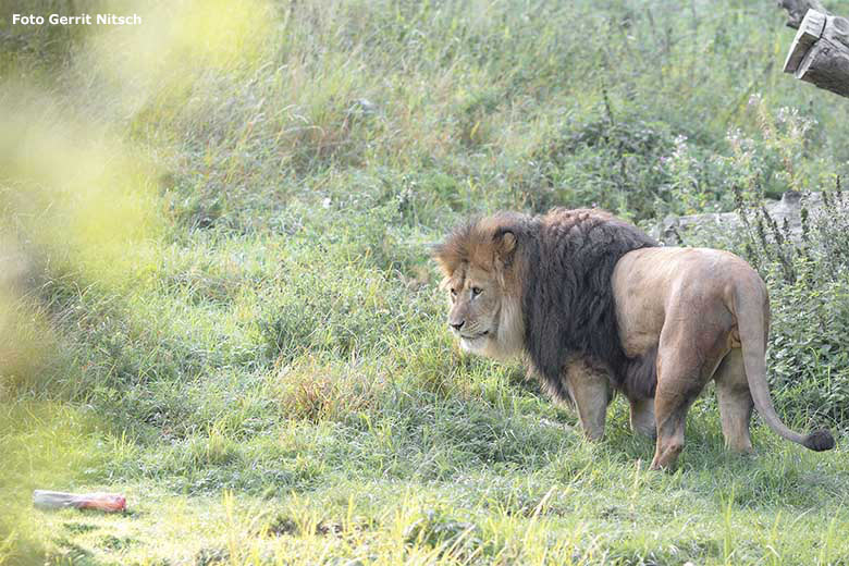 Kurz nach dem morgendlichen Herauslassen aus dem Löwen-Haus auf die Löwen-Savanne können Zoobesucher/innen die drei Afrikanischen Löwen-Kater "Massino", "Shawano" und "Tamo" auf der Außenanlage aus relativer Nähe betrachten, ehe die großen Raubkatzen auf die Höhe der Löwen-Savanne wandern.