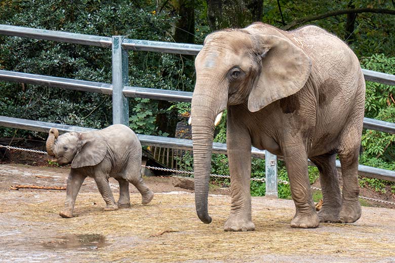 Afrikanische Elefanten-Jungtiere am 6. September 2020 auf der Außenanlage im Zoologischen Garten Wuppertal.