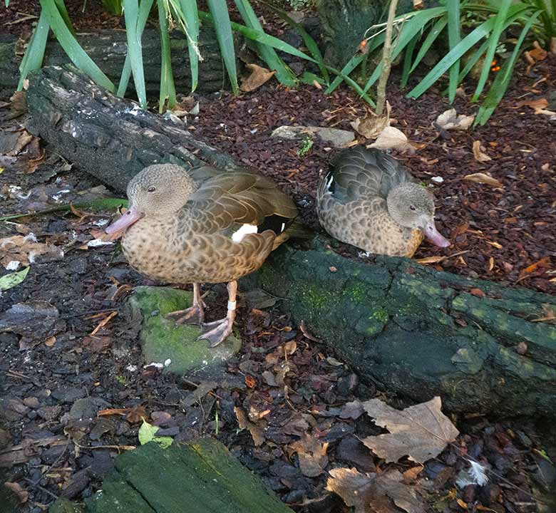 Archivfoto: Bernierenten-Paar am 23. Februar 2019 in der Madagaskar-Voliere neben dem historischen Gebäude der Zoo-Direktion im Grünen Zoo Wuppertal.