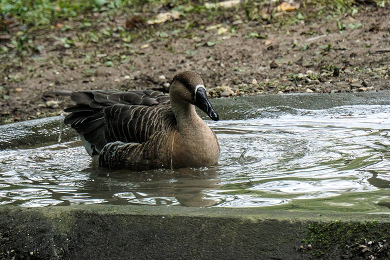 Streifengans am 17. September 2020 am Teich für Wassergeflügel in der Nähe des Blumen-Rondells im Grünen Zoo Wuppertal.