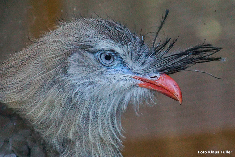 Adulter Rotfußseriema am 6. September 2020 im Greifvogel-Haus im Grünen Zoo Wuppertal.