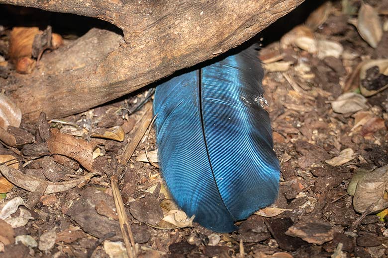 Zoobesucher/innen können die beiden Jägerlieste anhand des Gefieders leicht unterscheiden. Das Jägerliest-Männchen hat an den Seiten blau gefärbte Federspitzen, während solche Federspitzen beim Jägerliest-Weibchen weiß sind.