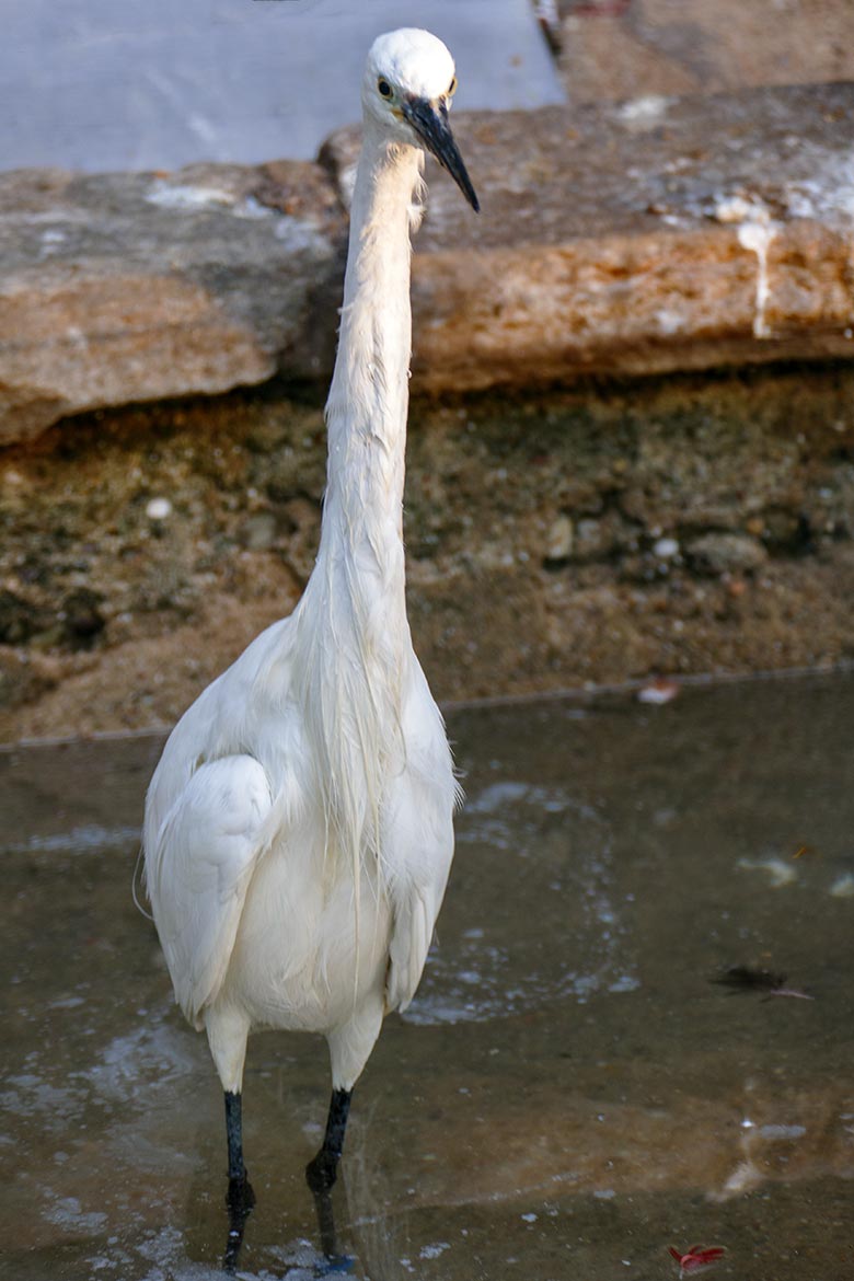 Ab und zu können Zoobesucher/innen beobachten, wie eine Schwanengans ein Bad im Wasser der Außenanlage nimmt.