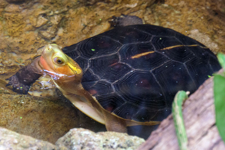 Gelbrand-Scharnierschildkröten am 10. Oktober 2021 in einem Schaugehege im Terrarium im Zoologischen Garten Wuppertal.