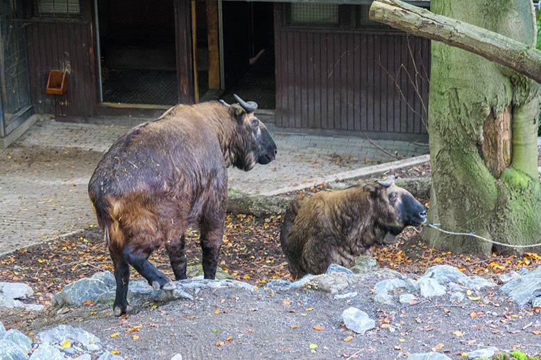 Mishmi-Takin-Weibchen MINJA und ROLI am 11. Oktober 2021 auf der oberen Außenanlage im Grünen Zoo Wuppertal.