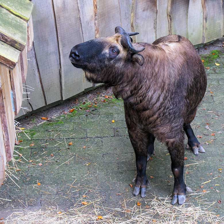 Weiblicher Mishmi-Takin MINJA am 27. November 2021 auf der oberen Außenanlage im Zoologischen Garten Wuppertal.
