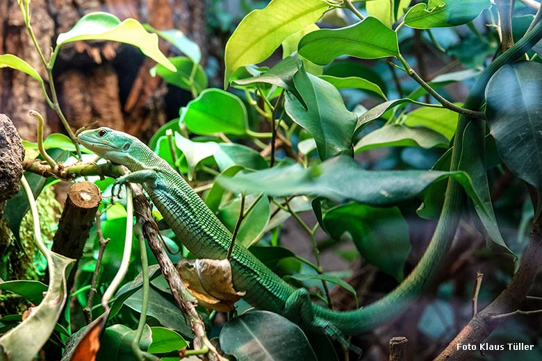 Grüne Baumeidechse am 30. Januar 2022 im Terrarium im Grünen Zoo Wuppertal.