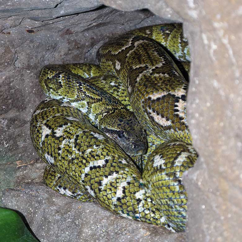 Madagaskar-Hundskopfboa am 22. Januar 2022 im Terrarium im Grünen Zoo Wuppertal.