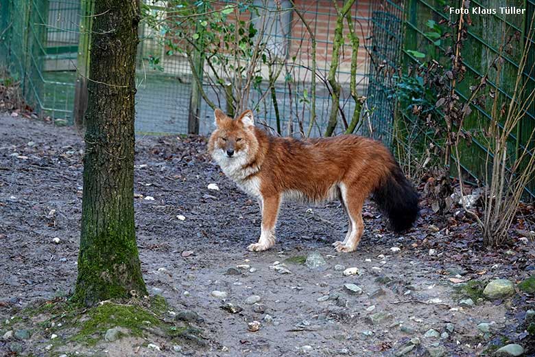 Asiatischer Rothund am 8. Januar 2022 auf der Außenanlage im Zoologischen Garten der Stadt Wuppertal.