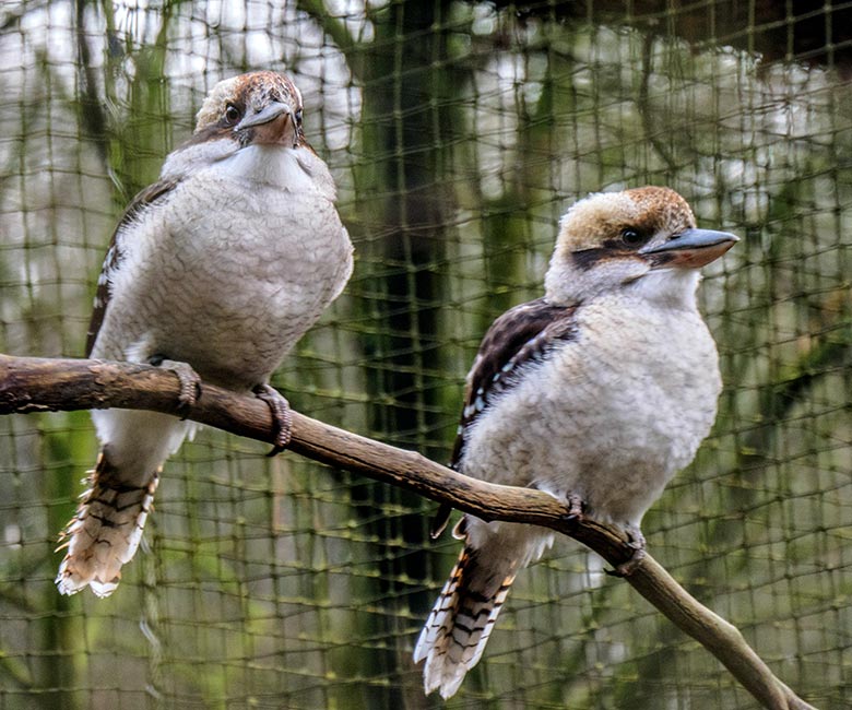 Jägerliest-Jungtier mit seiner Jägerliest-Mutter (rechts) am 28. Januar 2022 in der Außenvoliere im Grünen Zoo Wuppertal.