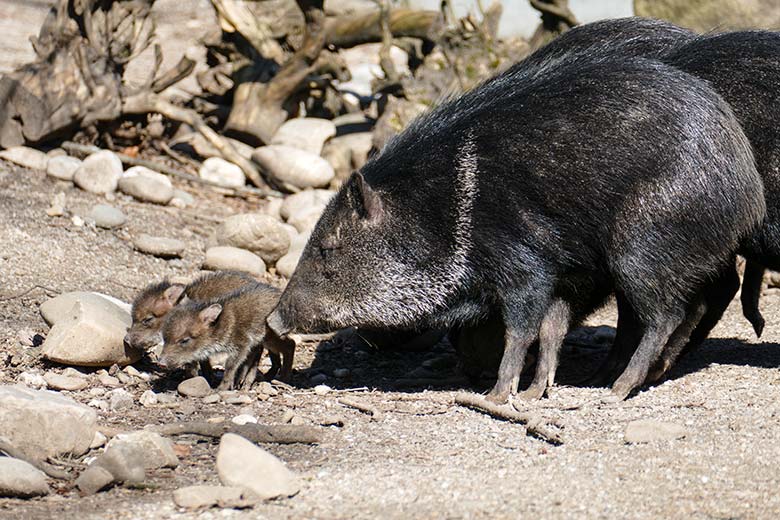 Am ersten März-Tag 2022 konnten Zoogäste im Zoologischen Garten der Stadt Wuppertal das am 4. Februar 2022 geborene weibliche Hirscheber-Jungtier "Dua Hati" mit seiner Hirscheber-Mutter "Yala" beim Erkunden der oberen Außenanlage entdecken.