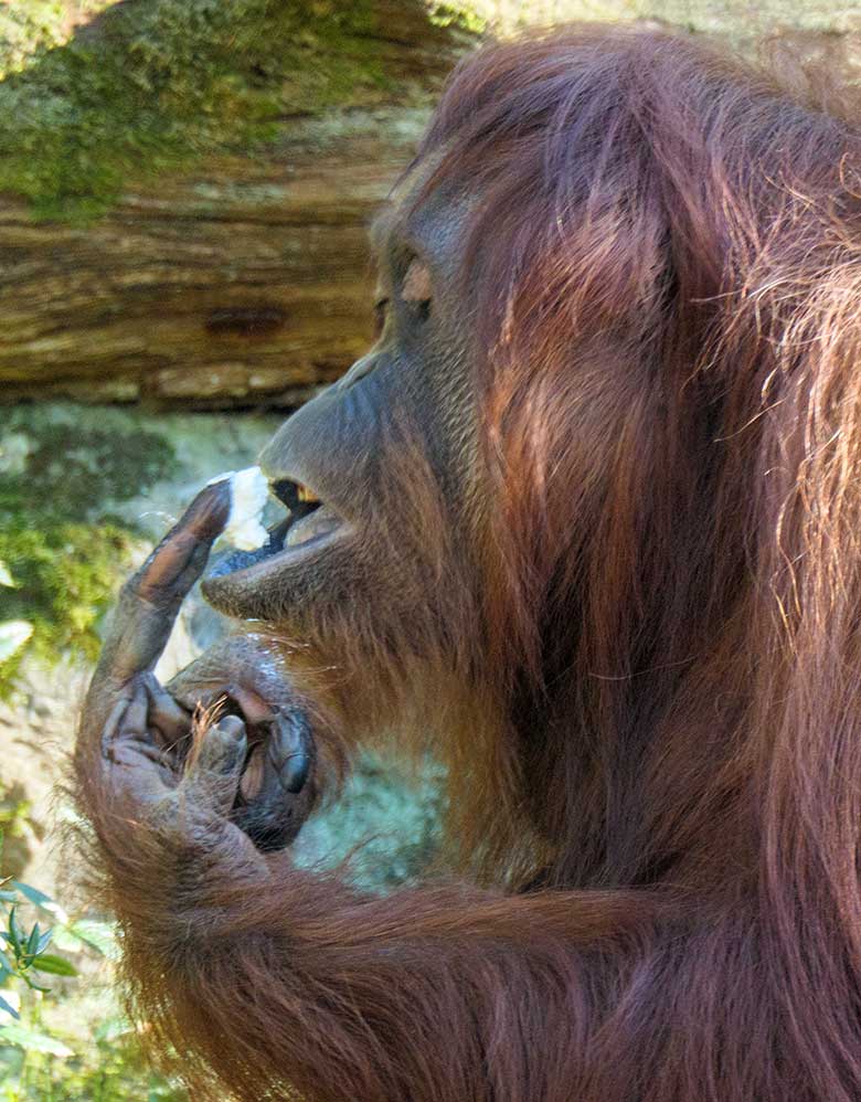 "Das sieht so aus, als wenn sich der Affe die Zähne putz" meinte ein Kind zu seinen Eltern an der Außenanlage der Schwarzen Klammeraffen am Affen-Haus im Zoologischen Garten der Stadt Wuppertal.