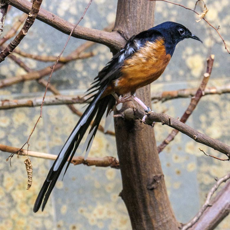 Gelbsteißbülbül am 2. März 2022 in einer Außenvoliere am Vogel-Haus im Grünen Zoo Wuppertal.