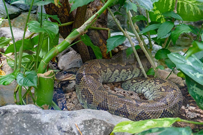 Schnecke am 4. Juli 2022 im Eingangsbreich der Freiflughalle am Vogel-Haus im Zoologischen Garten Wuppertal.