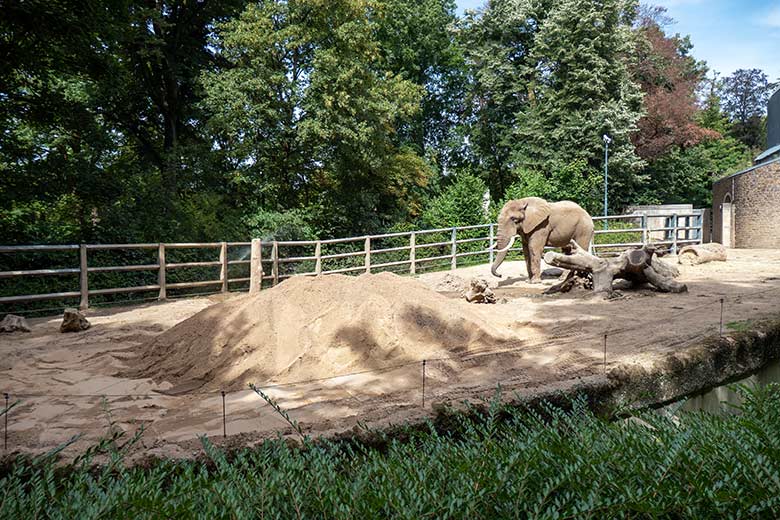 Neuer Sand für den Afrikanischen Elefanten-Bullen TOOTH am 28. Juli 2022 auf der kleineren Außenanlage am Elefanten-Haus im Grünen Zoo Wuppertal.