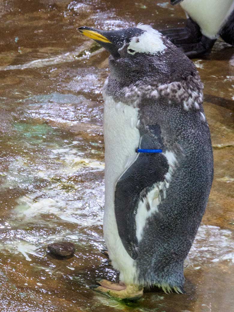 Eselspinguin in der Mauser am 28. Juli 2022 im Pinguin-Haus im Zoologischen Garten Wuppertal.