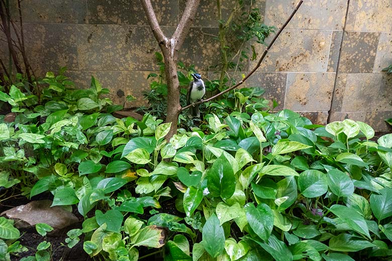 Männliche Schamadrossel am 27. September 2022 in der Innenvoliere im Vogel-Haus im Zoo Wuppertal.